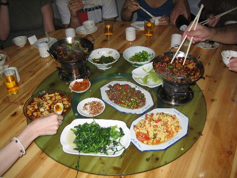 This is what it looks like at a meal: family-style for everyone to sample the dishes