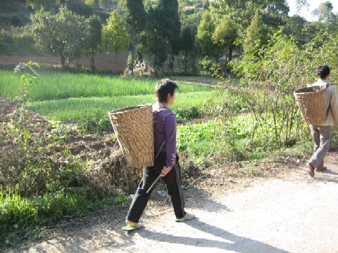 This is how local farmers transport their vegetables: in hand-woven baskets