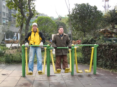 Tomas thinks it was fun to try some Chinese exercise equipment