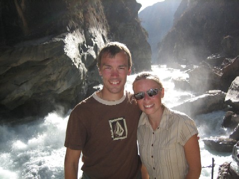 Us in front of the raging river (after a grueling extra 4-hour hike down to the river, we decided, despite dangerous drop-offs, that the view made it worthwhile!)