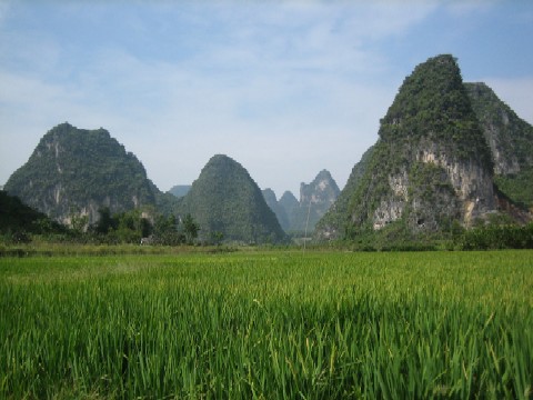 Karst mountains and rice terraces in northern Guangxi, October 2008-10-16