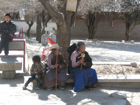 In the morning in the winter months, pilgrims circumnavigate the city with their prayer wheels