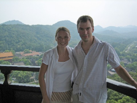 | We climbed to the top of the “old” pagoda. (We were told it was nearly 1000 years old, but it was actually built only a few years back, where the old one had previously been located. It was ultramodern with an elevator and A/C)! |