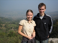 Greetings friends! Now the end of November is already upon us and with it, cloudier days and colder weather, although we have yet to see any frost. Since we wrote last we have been busy with our classes, occasional student movie nights in our apartment (the last time with 24 students!), and with other activities. We are lucky to be healthy, except for stubborn colds that keep reappearing. This week Tomas had a cough and was hoarse. Of course, we know that he will certainly soon be better since it is a regular cold. But several of his students, and even a colleague, have both called and e-mailed him to express their concern. One teacher colleague, our friend, Ren Laoshi, tried to convince him to visit a doctor. He said, “But I know a very, very, very…” and here Tomas expected him to say “GOOD doctor”, but instead he said, “…OLD doctor of Chinese medicine…”  | | | We thought it was so funny that for him, the most important characteristic for the doctor was that he was “very, very, very old!” We figure that these colds are due to the change in environment, and hopefully soon we will be over them. On Oct. 31 we attended our first Chinese Halloween party. It was organized through the Oral English Association, and it was held at the college. It was certainly a unique experience! I felt like a cross between a college teacher and a 7th grader. There were hundreds of students there, and of course we were seated, together with Thad, Michelle, and Sarah, the other foreign teachers, in the very front row. We had been told that everyone MUST dress up in a costume. Well, since we have only been here for a short while, we didn’t have much in the costume department, so I dressed up in Tomas’ clothing, with pants, shirt, and a tie, and Tomas wore a sheet provided by Sarah, to look like a ghost. The students were very creative. Most of them had made a little mask out of paper or other materials, and this they held up in front of their faces, as if it were an old-fashioned masquerade ball! The party began with Thad introducing the origins of Halloween, and then with a movie, and then with games, and even some dancing. (If you want to see something hilarious…visit www.e455.se/kina and watch Tomas and Sarah, the volunteer from England, in a tough tug-of-war match, in their Halloween outfits!) Apparently, however, Tomas and Thad’s Halloween outfits were never understood by the students, because I am still getting questions like, “Why was Mr. Stenback wearing white on Halloween?”  | | | Tomas had the honor of playing on the English Department’s soccer team in a tournament this month. Thanks to him, (or at least, that is what the team said!) they won the tournament! Tomas had a lot of fun playing. But as usual, before the tournament could begin, they called him to come and “give a short speech.” In the last game Tomas got a yellow card (which could have been red, had he not been a foreigner), and the spectators and players alike all seemed to think that was hilarious! With some students’ help, we have now found and we have now attended our local church three times. What a feeling it is to attend this church! Unfortunately, we do not understand much, but we have Chinese-English hymnals and we try our best to follow along. Whenever we look a little lost (which is probably most of the time!) a nearby person will come and take the book from us and find the correct number! The church is obviously extremely poor.  | | | The walls and floor are only painted cement, so the first time we attended we both shivered through the entire service. Now we know what to expect so the second time, even though it was warm outside, we both dressed very warmly and it was much better. (We have seen that they do not have heat in the church, so it should get quite cold there soon). When we enter the church, people turn and smile or wave and seem so happy to see us. Then a few moments after sitting down, the last few times, a very old man has tried to give us his handmade, extremely thin sit cushion that he is using himself. Last time, the man looked like he was 90 years old, and he looked all skin and bones! Of course we thanked him but we managed to get away with not accepting it. The last time we attended, they had communion for the first time. What an experience that was! Most surprising, and yet touching, was after the bread had been passed around and eaten, when we looked up to see the pastor in the front, praying for and blessing…yes, an old silver teapot! Then we realized that instead of wine or juice, which are expensive and which they do not have here, they use tea for the communion. Then the communion assistants passed out tiny teacups to each person in the congregation, and then together we drank the communion tea! We have received many questions about the church in China. Some people have asked what type of church we attend, for example, if it is a Christian church or not, and yes, it is. We are very happy to have found the local church and we plan to continue to attend whenever we can, despite language difficulties! (Made especially difficult because apparently the local dialect is spoken there).  | | | The local people who attend the church seem perfectly happy to be there, and to sit for three hours total in a freezing cement building. I wonder if we would be willing to do the same? We have posted a video from inside the church, of the congregation singing a hymn, on our web page, which you can watch if you are interested in taking a look inside the church. We were happy to be able to go on one more great hiking trip before the weather got too cold. For this past trip, our friend, Ren Laoshi, and Thad and Michelle, (and some students who seemed to have planned to tag along!) hiked up the highest mountain around Chengxian. Chengxian is at 700 meters, and the mountain we hiked was 2000 meters high, so for us anyway, it was quite a day! The weather that day was perfect, not too hot