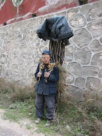A few weeks ago we journeyed to the capital of Gansu, Lanzhou, to meet all of the Gansu Amity English teachers for a conference. It was a long trip both on Friday and Sunday, but it is fascinating to watch the landscape change as we travel. Where we live, in the southwestern corner of Gansu, we are surrounded by green mountains. As we travel to Lanzhou, the landscape slowly changes until it is almost desert around Lanzhou. It felt wonderful to see our colleagues again. We spent time together talking, sharing experiences, and just having a good time. Tomas and I also managed to get in some grocery shopping for several things that we cannot find in our remote area (like olive oil). All in all it was a long and tiring weekend, but it was well worth it to see so many friends and colleagues again. Then the week after the Lanzhou conference, Tomas and I traveled to Xi’an on Friday, to meet our first visitors! My friend, Maria, and her husband, Magnus, chose to have their late honeymoon in China, and in their trip they included a visit to our place! We met in Xi’an for the weekend, and there we stayed in a nice hotel and enjoyed the spacious rooms (with wonderfully soft beds, unlike our extremely hard, Chinese beds) and we swam in the pool as well. We also toured some sites in Xi’an and ate great food, and did a little shopping. We really like the atmosphere in Xi’an, especially along some shopping streets! Tomas has become a great bargainer, so he helps me shop and he helped Maria and Magnus make a few purchases as well. I think it is a perfect combination: I get to shop for Chinese knick-knacks, and in the process, he practices his Chinese…! Then on Sunday we traveled by train and car back to Chengxian. We showed them around the city, and some of the countryside, which, one could say, is the “real China,” not just a big city. We had several short meetings with local people during their visit, since of course 4 foreigners is even more surprising than 2...We saw this man walking with an enormous burden on his back. The man was very short, much shorter than Maria and I even, and when we met him, he stopped to rest. We then asked if we could take his picture, which we could, and then we were able to talk with him for a few minutes. These short meetings make it feel like it is definitely worthwhile to study our Chinese! It was a wonderful visit, although we felt sad to see them leave. In our last letter we wrote about how Tomas biked a few minutes into the countryside and felt like he was traveling back in time. Well, this month we have had some moments like that again. Now that it is late fall, when we go outside we can both smell and see smoke. This dirty smoke is coming from coal that they are burning to heat all of the homes around us. Of course we are grateful to no longer be shivering in our apartment, but we can already notice that the air here is not as fresh as it was when we first arrived. Also, when we bike or walk outside town, we can see that the farmers are still hard at work on their fields. Their fields are literally tiny compared to anything we have seen before; they almost look like a regular-sized garden in Northern Minnesota! But the difference here is that these farmers live on that little “garden.” Sometimes we see people working the land by hand, with tools, and sometimes we see farmers with an ox and a plow made entirely of wood. For us this is almost a little exciting to see this, because it feels like we are traveling in time. But for them, this is their reality. They do not have anything better than hand tools or perhaps an ox and a wooden plow. For them, this reality is certainly not as “cute” as it seems to us. This is their reality and they need to farm to survive. We hope that this letter finds you well. We are happy for all of the ways that we are able to keep in touch with friends and family while we are here. What would we do without the Internet?! We use the Internet for everything, including calling our families. This month I was even able to talk with my 97-year-old grandma twice on Skype! (see pic)Rachel and Tomas