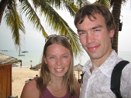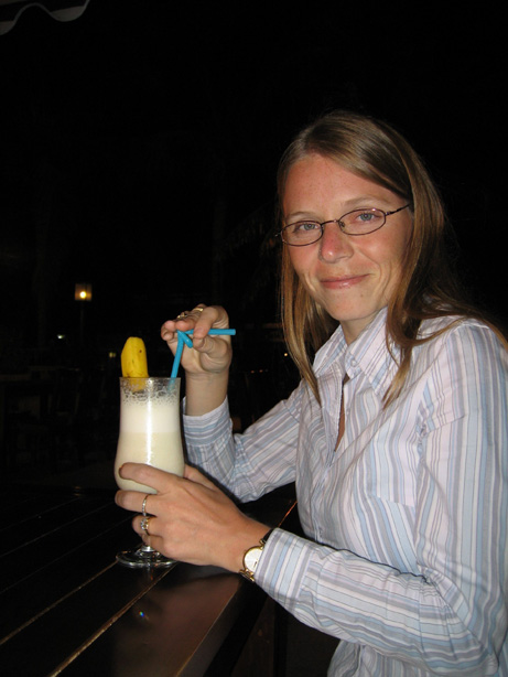 Hi! Just a quick post-Christmas update with some pics. Tomas and I spent this Christmas, together with our friends and Amity colleagues, Gunnel and Per-Martin Hjort, on Hainan Island, in southern China. Despite the very long journey in a relatively short time, it was definitely worth the trip. The weather was mostly nice. We spent most of our time relaxing, talking, lounging on the nice sandy beach (it was about 22 degrees C), swimming in the ocean, and eating great food. On Christmas Eve we relaxed and then met Gunnel and Per-Martin in our hotel room for a nice talk together, and then we ate Christmas Eve dinner at a Japanese restaurant right on the beach. It was fun and delicious! The trip home was very long; due to a weather problem in Xi'an we left Hainan at 11 AM (3-hour delay), and then we landed in Xi'an, where we missed our train, but we still managed to make it back (after catching the last train of the day) to Tianshui, and then we found a taxi so we arrived home at 1:30 AM. We are tired today but we are very happy we went. This was our first Christmas to be away from both of our families, and since Amity arranged for us to have two days off (the other foreign teachers and the Chinese teachers did not have any time off at all, since they do not have Christmas here) we were very happy to leave, even for just a long weekend. Instead of being at all sad to be so far from our families we had a wonderfully relaxing time in a nice environment, together with Gunnel and Per-Martin, whom we are getting to know better and with whom we had a great time! We thought you would like to see some pictures also. Soon we will finish updating our web page to include more Hainan pictures, and a short video from the beach. Take care! Rachel & Tomas  | | Ray with milkshake |